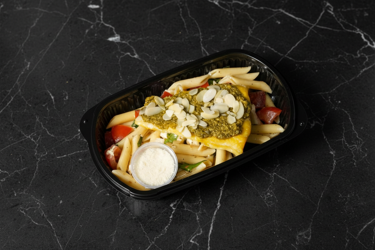 Served on a caprese pasta (Mozzarella & Fresh Tomato & Basil)