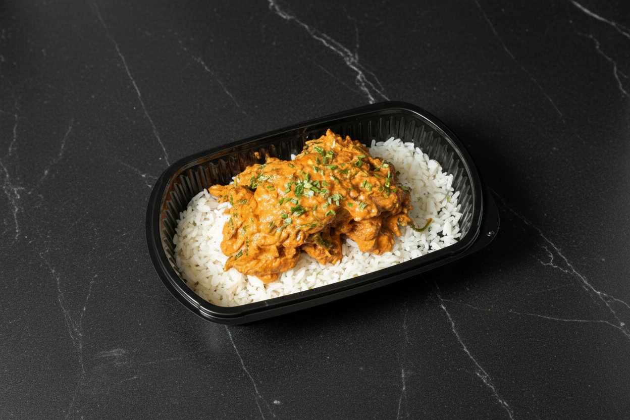 Chicken thighs marinated in spices and slowly cooked in our healthier version of butter chicken.