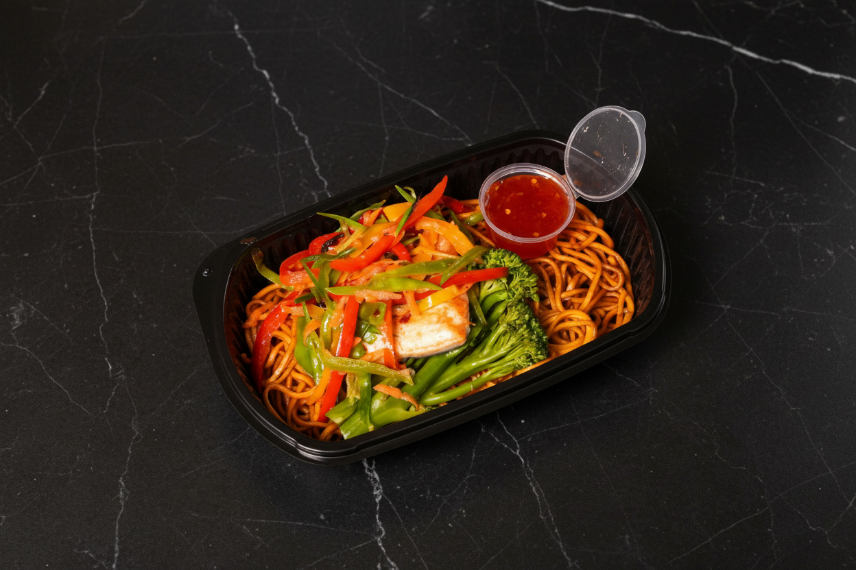 finely sliced peppers and onions served with a side of tenderstem broccoli & a sweet chilli pot.