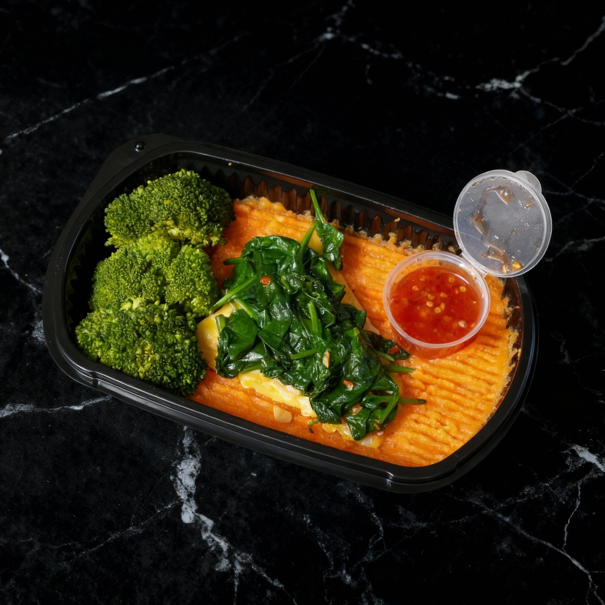 Served with sweet potato mash and a serving of seasoned broccoli.