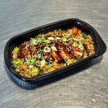 Char Siu Pork Fried Rice with marinated pork loin and vegetable egg fried rice.